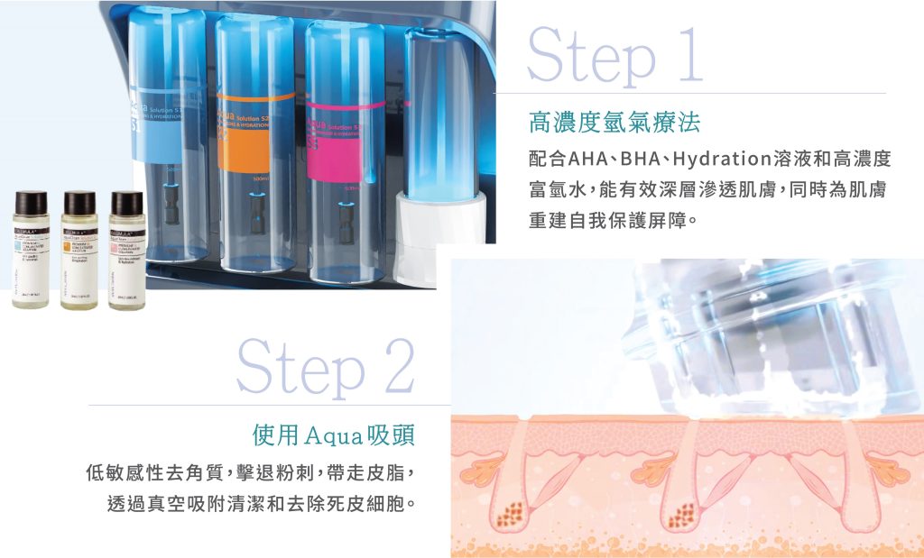 配合AHA、BHA、Hydration溶液和1500ppb高濃度富氫水,能有效深層滲透肌膚,同時為肌膚重建自我保護屏障。