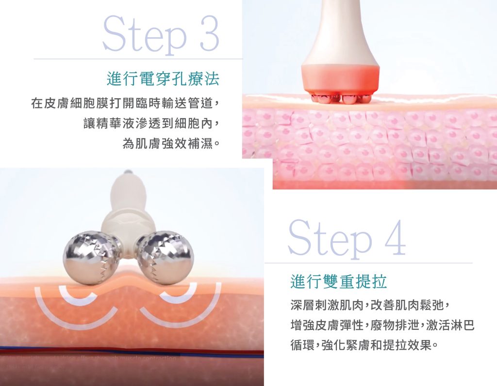透過特製探頭吸走多餘油脂、污垢和皮屑,去除老化角質